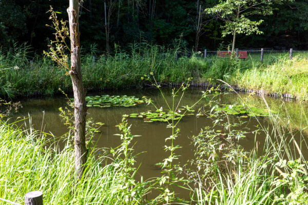 敷地内にはナイター設備付きのソフトボール場をはじめ、樹木に囲まれたアップダウンのある散策コースや芝生広場、小さな池が広がり、のんびりと自然を楽しめます。