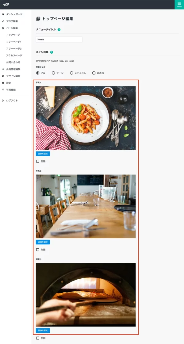 イメージ写真を3枚まで設定できます。複数枚登録でスライドショー表示になります。