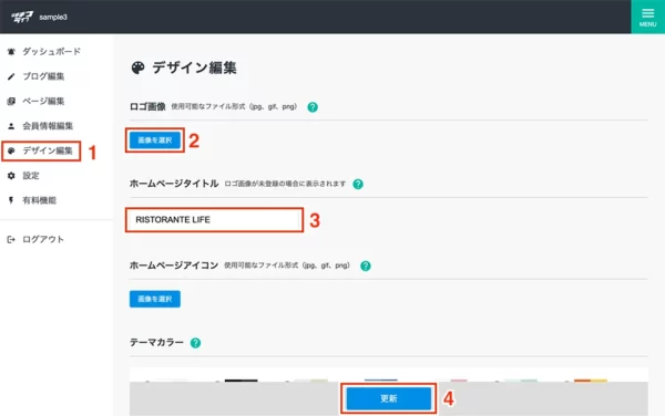 - 「画像を選択」ボタンをクリックしてロゴ画像を設定します。