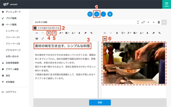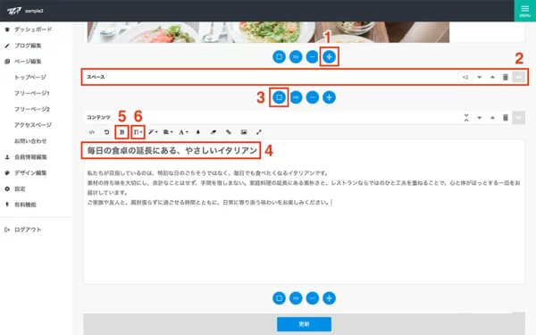 ここからは、トップページ制作でご紹介したフリーエリアの編集方法について、改めてご説明します。レイアウトバリエーションの参考としてご覧ください。