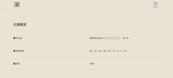 以上で店舗案内ページの設定が完了しました。次はメニューページを制作します。