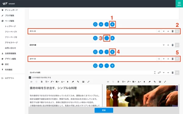 - 上に設定したコンテンツとの間にスペース(高さ4)を追加。